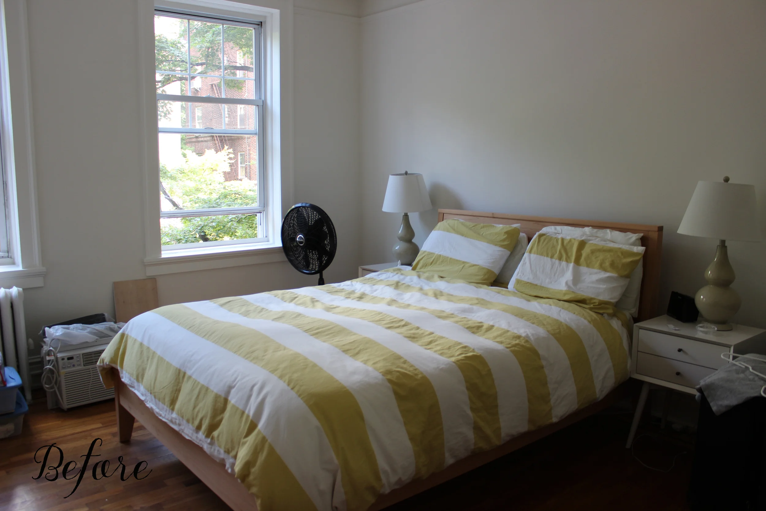 On to the bedroom! We purchased this wonderful Room and Board honey colored wood bed. Carrying the darker jewel tones from the painting in the living room, we created the perfect marriage of R&B bed frame with West Elm bedding and nightstands.